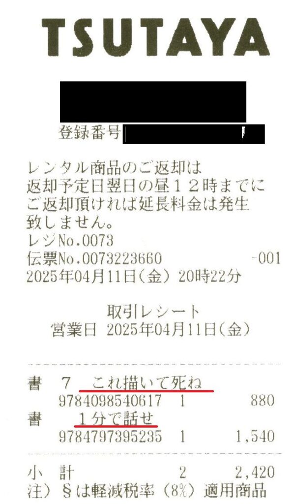 ツタヤで本を買ったのですが、やたら圧が強いタイトルが並びました。